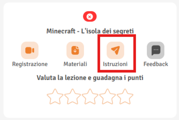 3. Accanto all’argomento della lezione troverai un pulsante rinominato “istruzioni”: ti basterà cliccarlo per accedere subito al manuale.